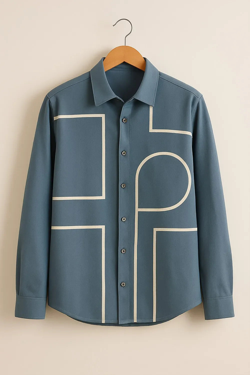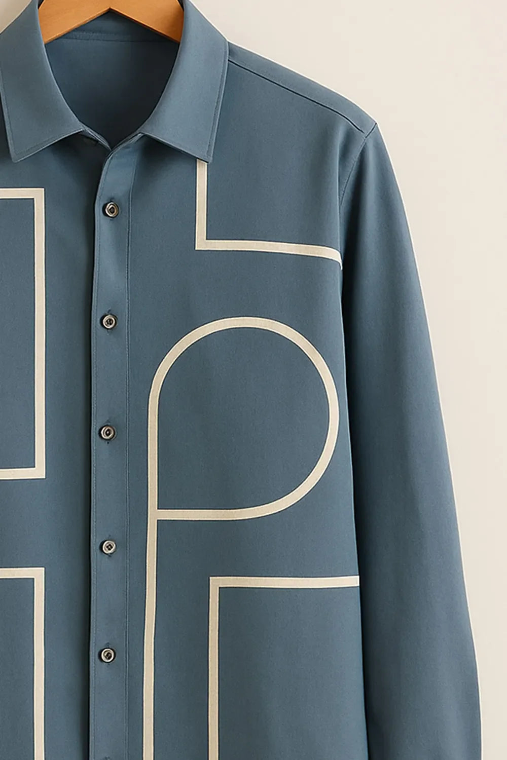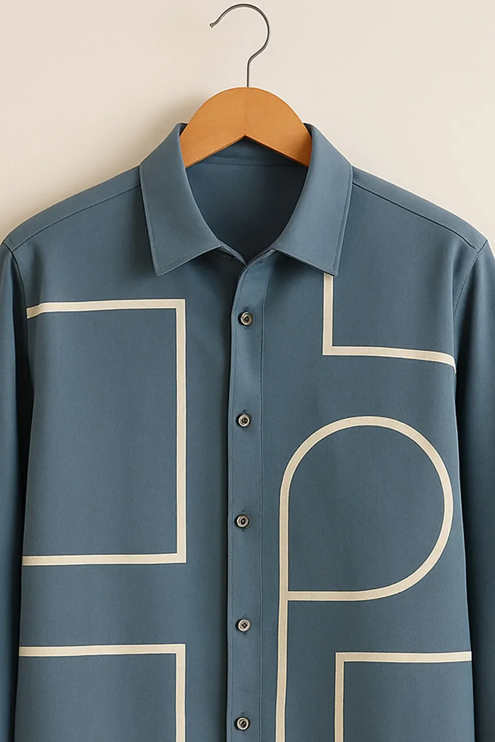 Men's Full Sleeve Cotton Shirt Featuring Bold Geometric Outline Pattern